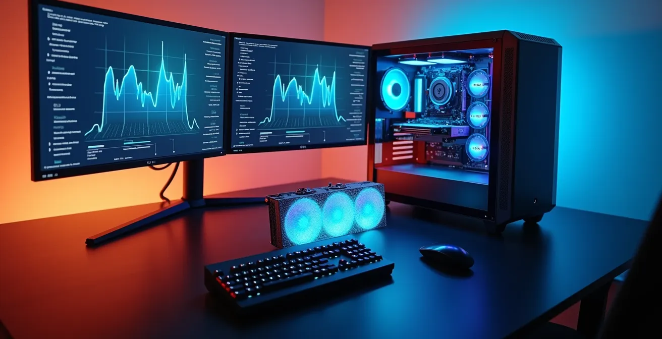 Le bruit d’une turbine d’avion qui décolle. C’est souvent la bande-son qui accompagne une session de jeu intense sur un PC équipé d’une carte graphique récente. Pour contrer la fournaise, le premier réflexe est souvent douloureux : sacrifier la qualité visuelle en baissant les ombres, l’anti-aliasing ou pire, le Ray Tracing. On se retrouve alors avec un monstre de puissance sous-exploité, un compromis frustrant entre performance et confort. On pense à changer la pâte thermique, à ajouter des ventilateurs, mais on ne s’attaque qu’aux symptômes, pas à la cause.