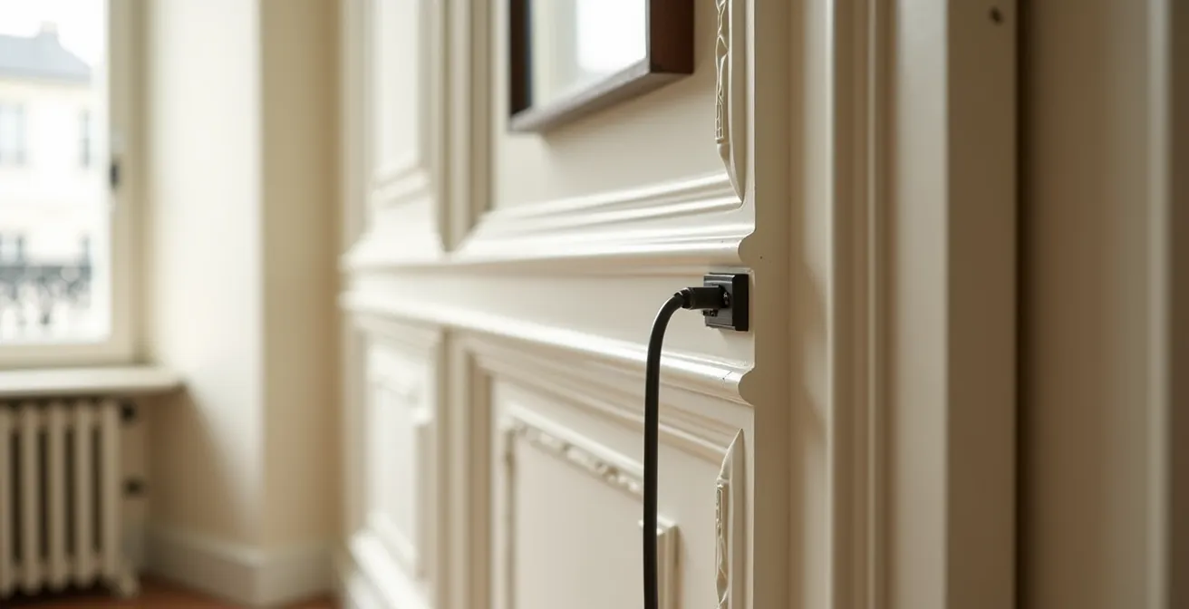 L’arrivée de la fibre optique dans un appartement ancien est souvent un moment à double tranchant. D’un côté, la promesse du très haut débit. De l’autre, l’angoisse de voir le charme de son intérieur – moulures, parquets anciens, murs en pierre – défiguré par une installation hâtive. La vision d’un câble blanc collé maladroitement le long d’une plinthe ou, pire, d’un trou percé au mauvais endroit, suffit à faire hésiter de nombreux propriétaires et locataires. En tant que technicien, je vois cette préoccupation tous les jours sur le terrain.